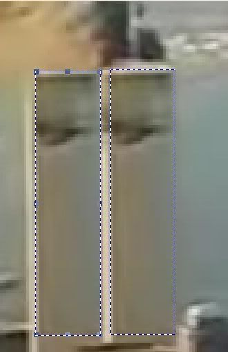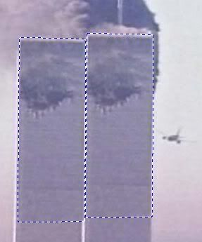 Note that both Towers are the same width and when the North Tower face is copied over, a gap not apparent in the fuzzy lo-grade video becomes visible. Bear this in mind - it's important.