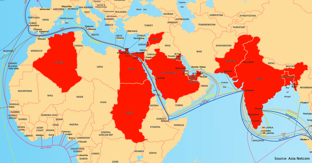 Can you please post this image or a link to this image you have seen. Im sure there are a lot of us out there who are looking. I have been working in Alexandria for over 3 weeks now and the weather was very bad at the time of internet failure so i can believe the anchor theory. Our driver said it was the worst storm he had seen in his 40 years on the planet.