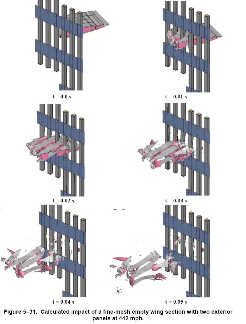 You go on to say that, a large passenger plane flown into a solid concrete structure is "obliterated"…the largest piece left would be small enough to fit in your pocket …You obviously haven't watched any video footage of actual crash testing of large aircraft. Deutch Wella Television recently screened such a programme in New Zealand, which showed American crash testing of planes as large as Boeing 747's into a huge solid concrete block cube, several hundred feet long, wide and high. Slow motion photography showed the entire compression, compaction and destruction of the planes in graphic detail, as they impacted into the side of this immovable obstacle. The aftermath was large sections of identifiable structure. Inevitably the tail sections, in conjunction with significant segments of attached fuselage survived complete, as did engines and sections of wings. |